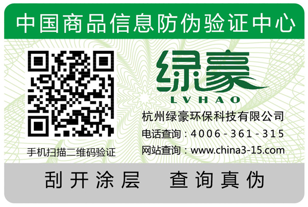 杜絕假貨冒充,綠豪產(chǎn)品外包裝貼有這個(gè)標(biāo)簽,